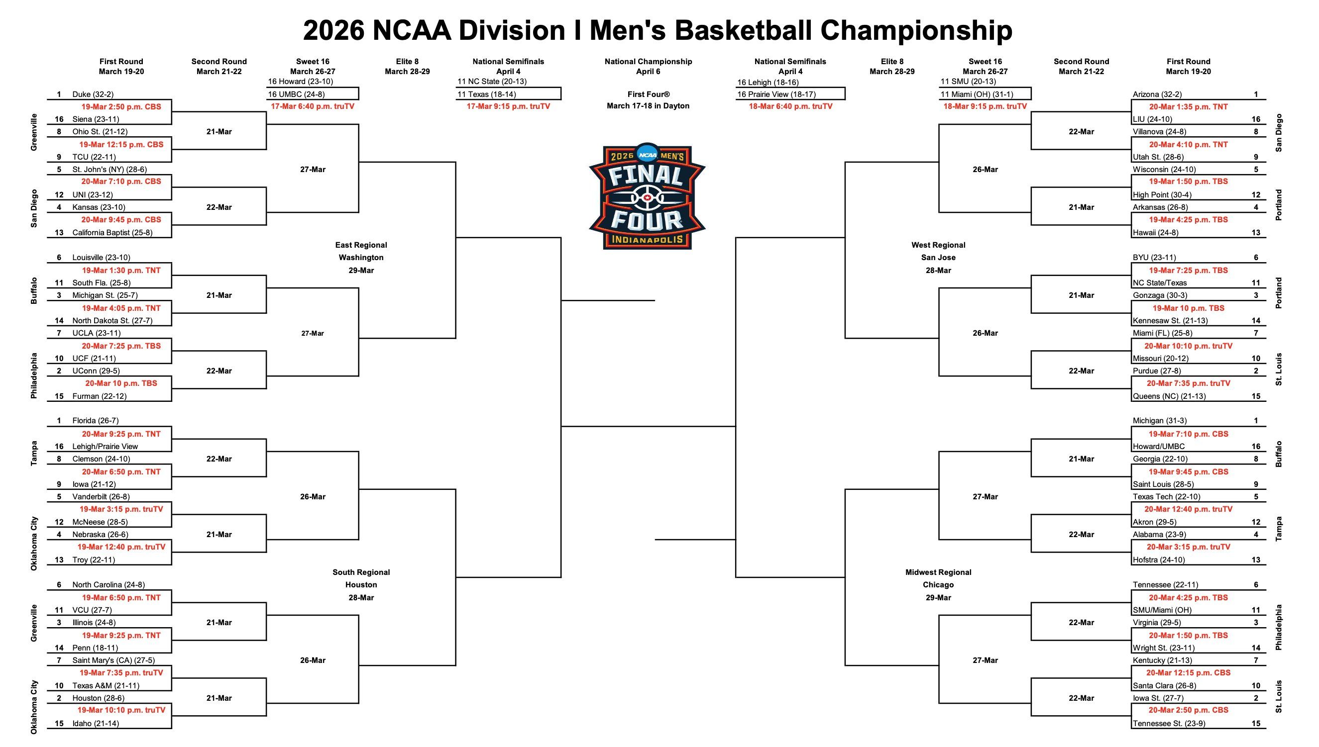 We dive into news, stats, facts, odds and much more for the 2026 men's NCAA Tournament bracket. Plus: Who won Sunday's title games, bubble talk, regional snapshots and which teams are passing on postseason tourneys.